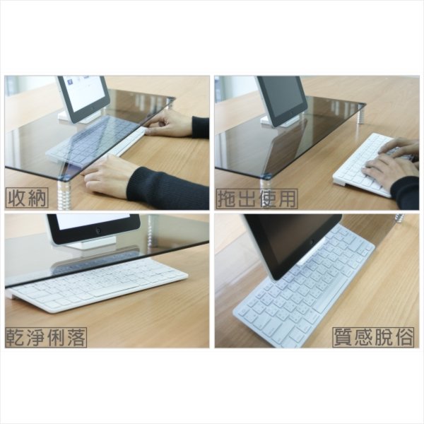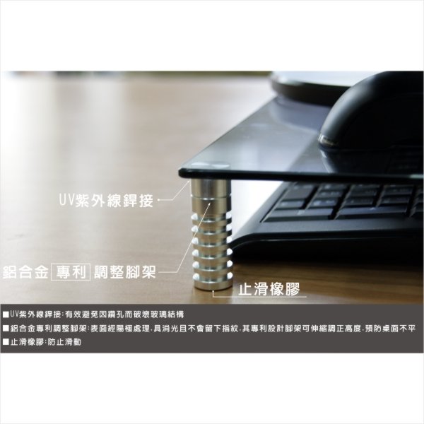 :表面經陽極處理.具消光且不會留下指紋.其專利設計腳架可伸縮調正高度.預防桌面不平