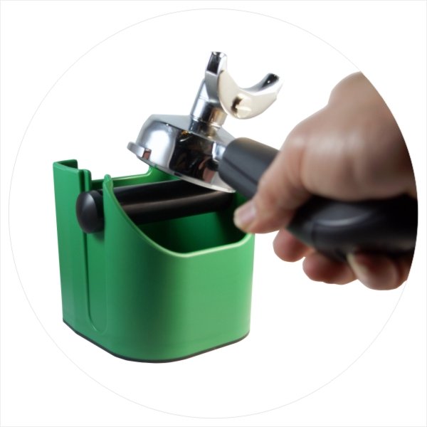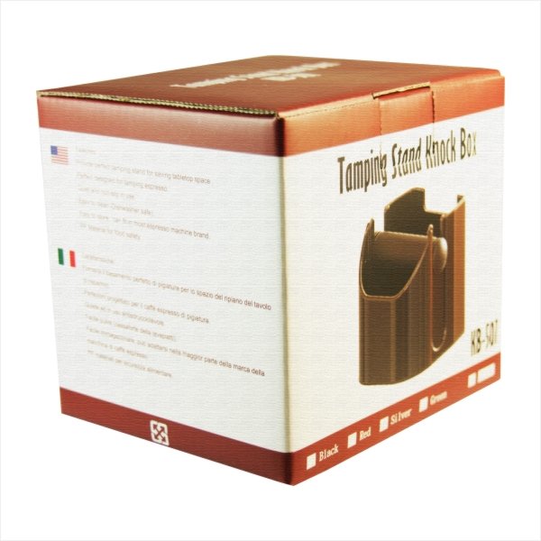 A very practical knock box which allows you to use as a tamping rest and also as a knock box. Small enough to fit under most group heads. If you are looking to save space, than this is the ideal accessory for you. The Tamping Stand knock box is available in four different colours - Black, Green, Red, Silver.